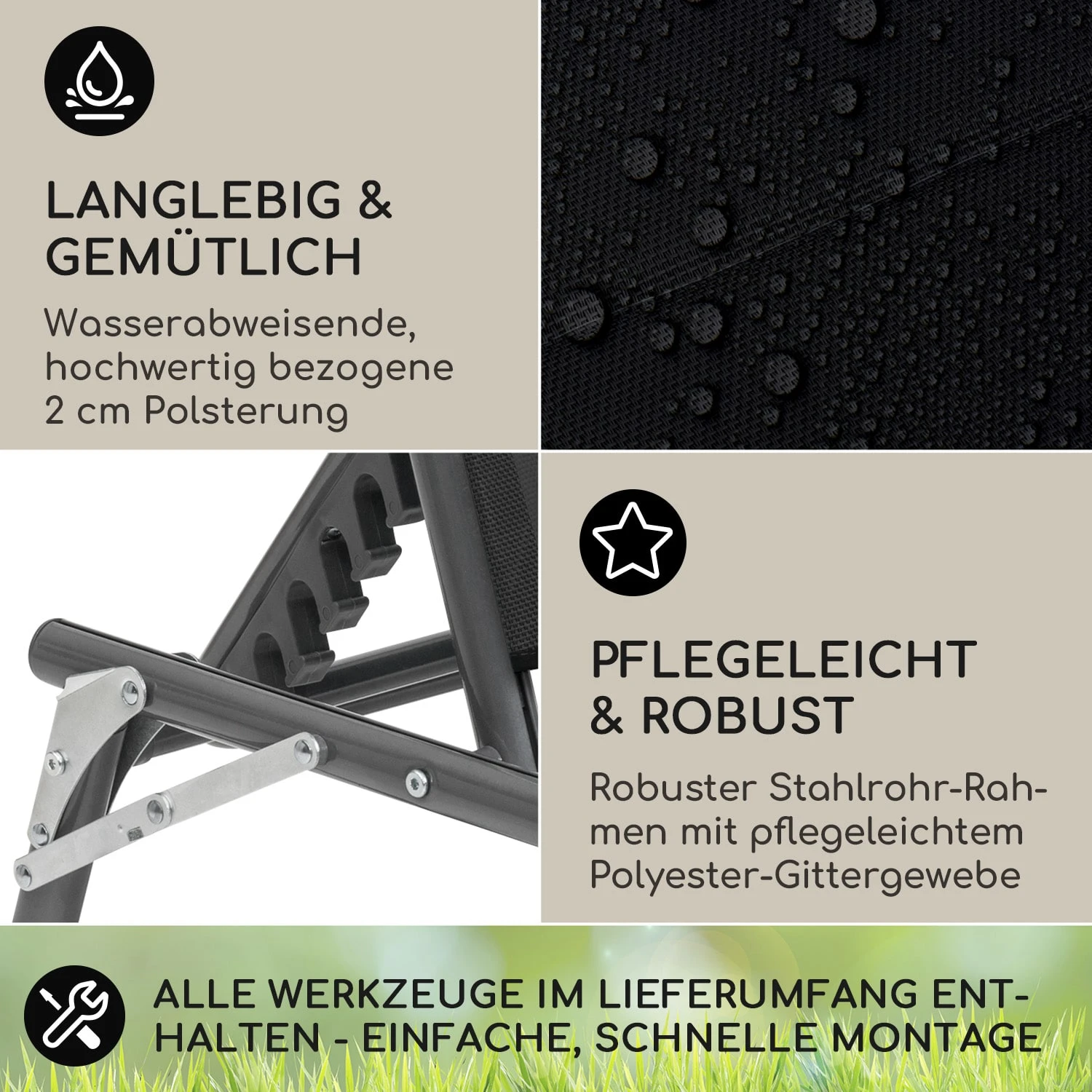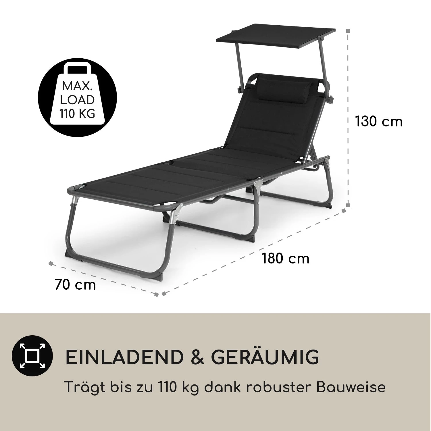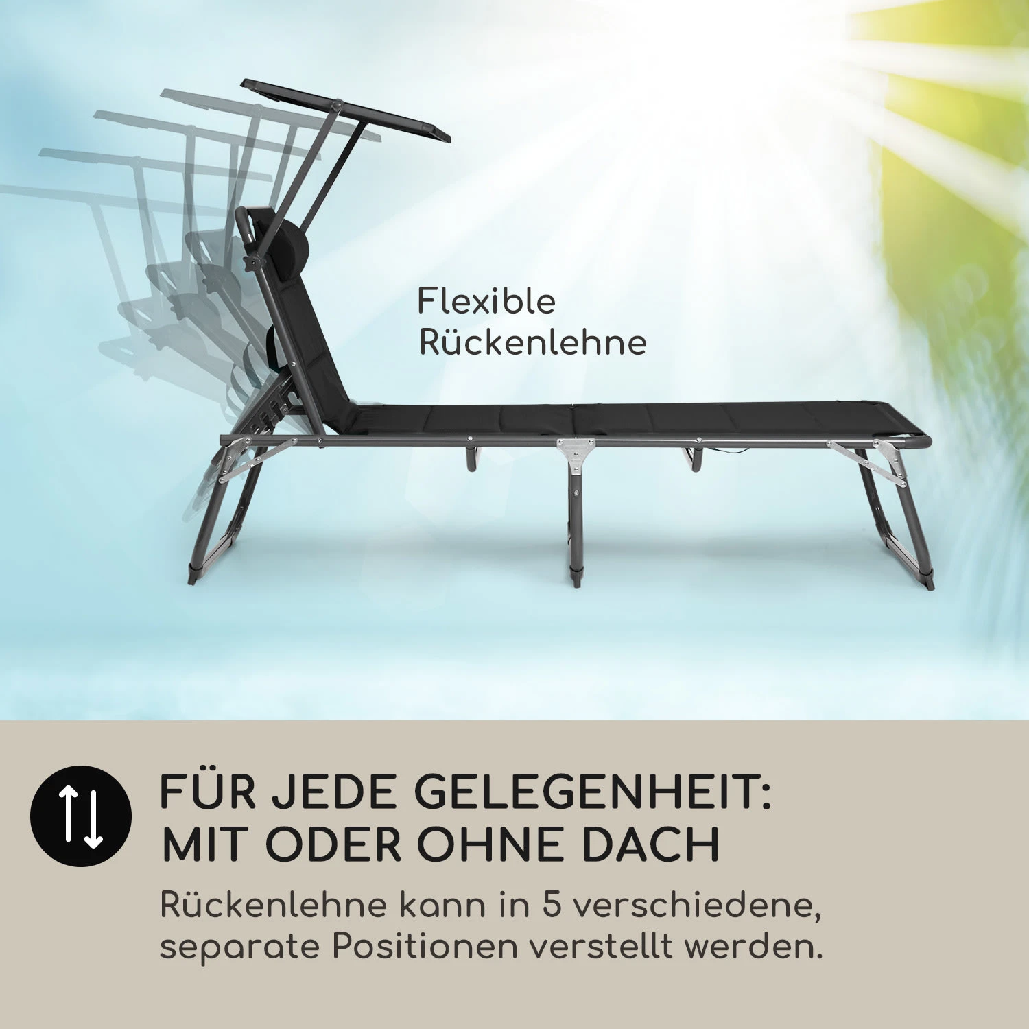 Amalfi Sonnenliege 70 X 37 X 200 Cm Sonnenblende 5-stufige Rückenlehne Stahlrohr Witterungsbeständig