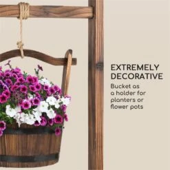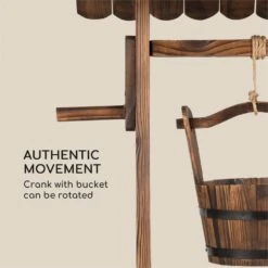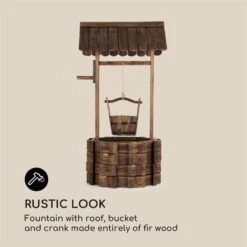 Vollkommen aus Tannenholz gefertigt weckt der 118 cm hohe Brunnen sofort Erinnerungen an vergangene Zeiten und holt rustikale Gemütlichkeit direkt nach Hause. Besonders zauberhaft: Der Eimer auf der drehbaren Welle kann direkt als Halterung für ein Blumenbouquet genutzt werden und stellt so die Verbindung zwischen blühendem Garten und dem Dekorationselement her.