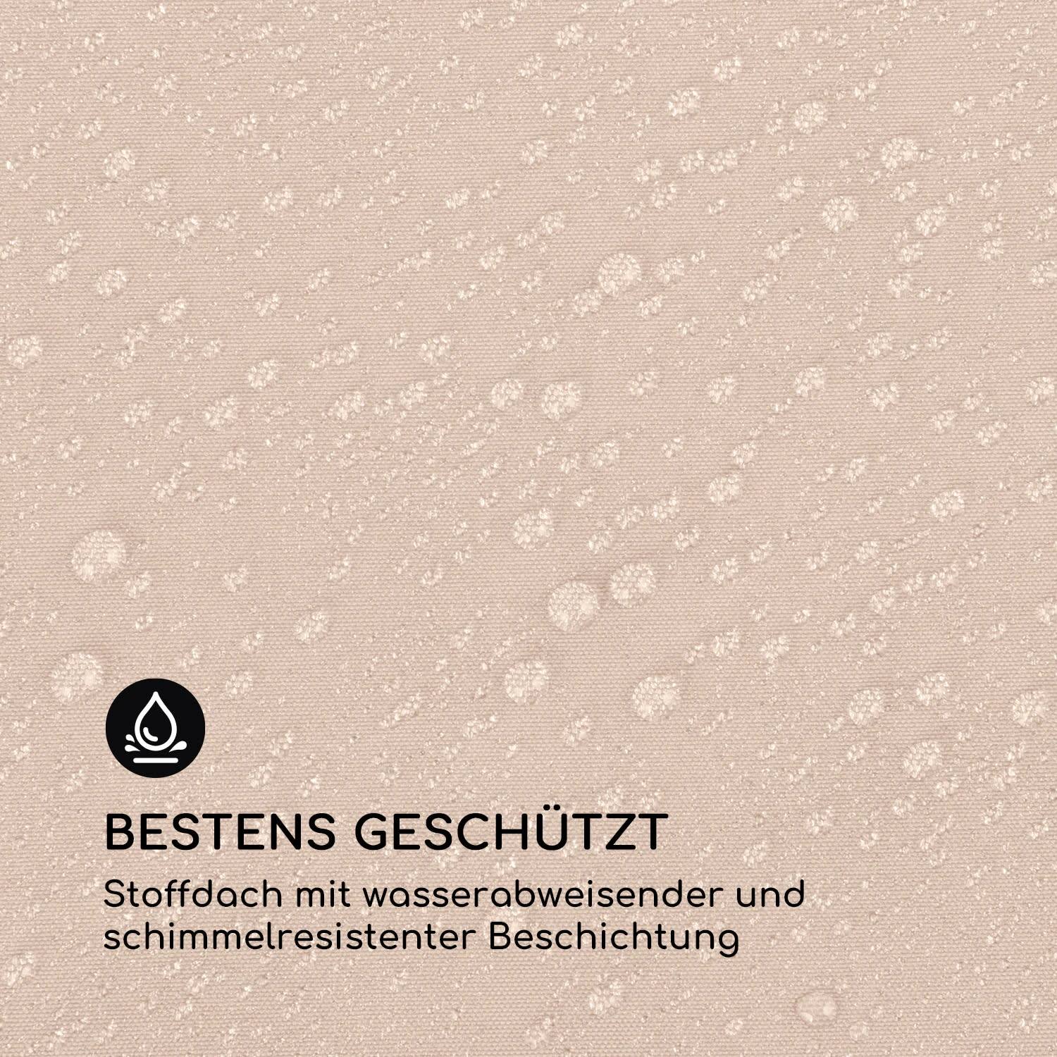 Jetzt angenehme Stunden mit Freunden und Familie im Garten verbringen: Mit einer überdachten Fläche von 3 x 3 Metern bietet der Grandezza Cortina viel Platz zum Entspannen unter einem üppigen Dach aus 180 g/m² Polyester mit wasserabweisender und schimmelresistenter Beschichtung. Der 6 x 6 cm starke Rahmen aus Stahl garantiert zudem maximale Stabilität und ist dank seiner Pulverbeschichtung vor Rostbildung geschützt.
