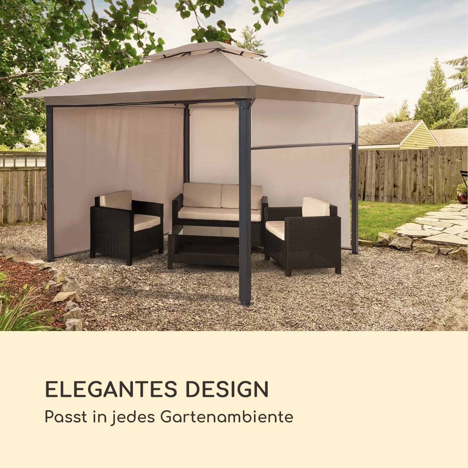 Den Sommer im Freien genießen – egal bei welchem Wetter! Der blumfeldt Grandezza Cortina Gartenpavillon ist luftiger Schattenplatz und wetterfestes Refugium in einem.