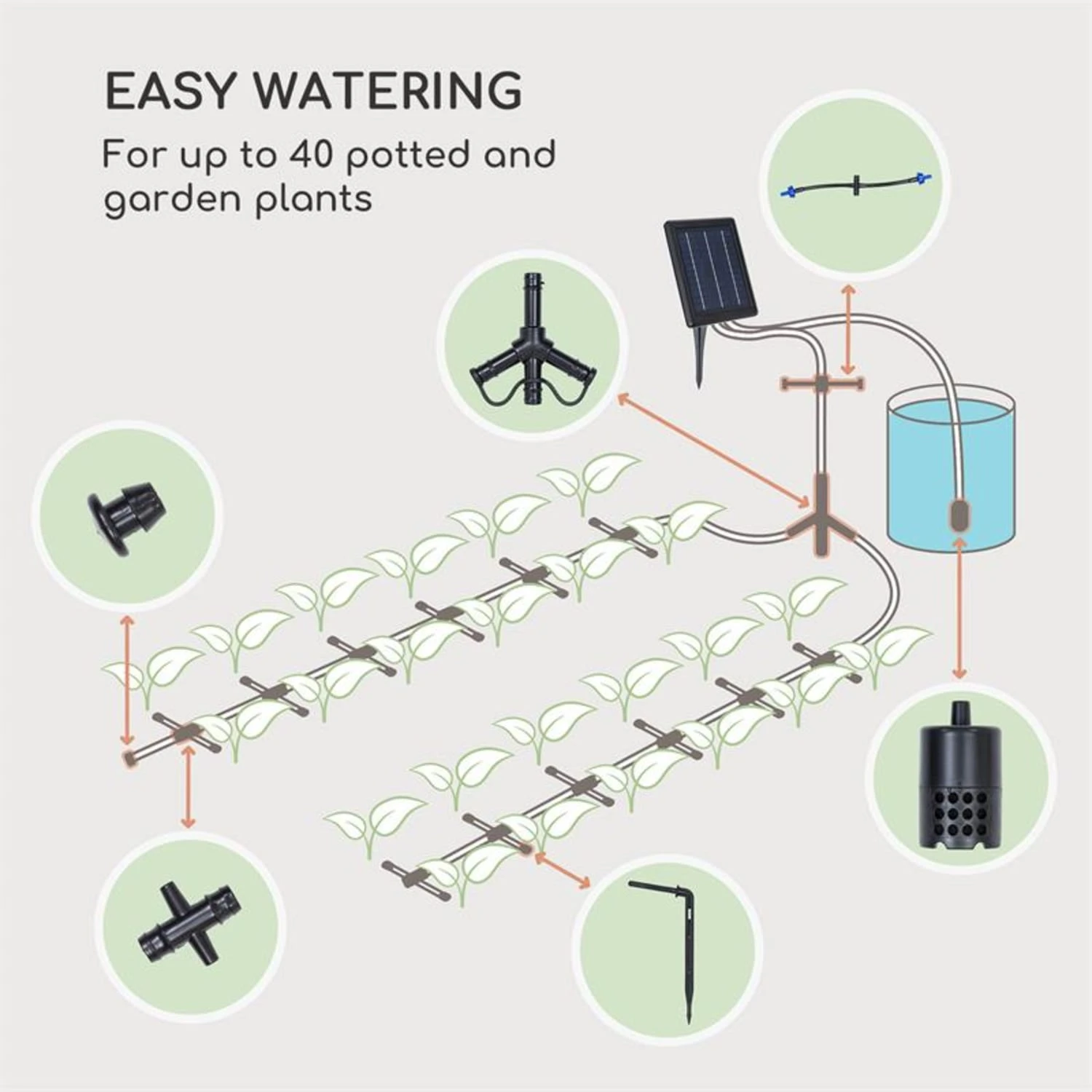 - für bis zu 40 Topf- und Gartenpflanzen