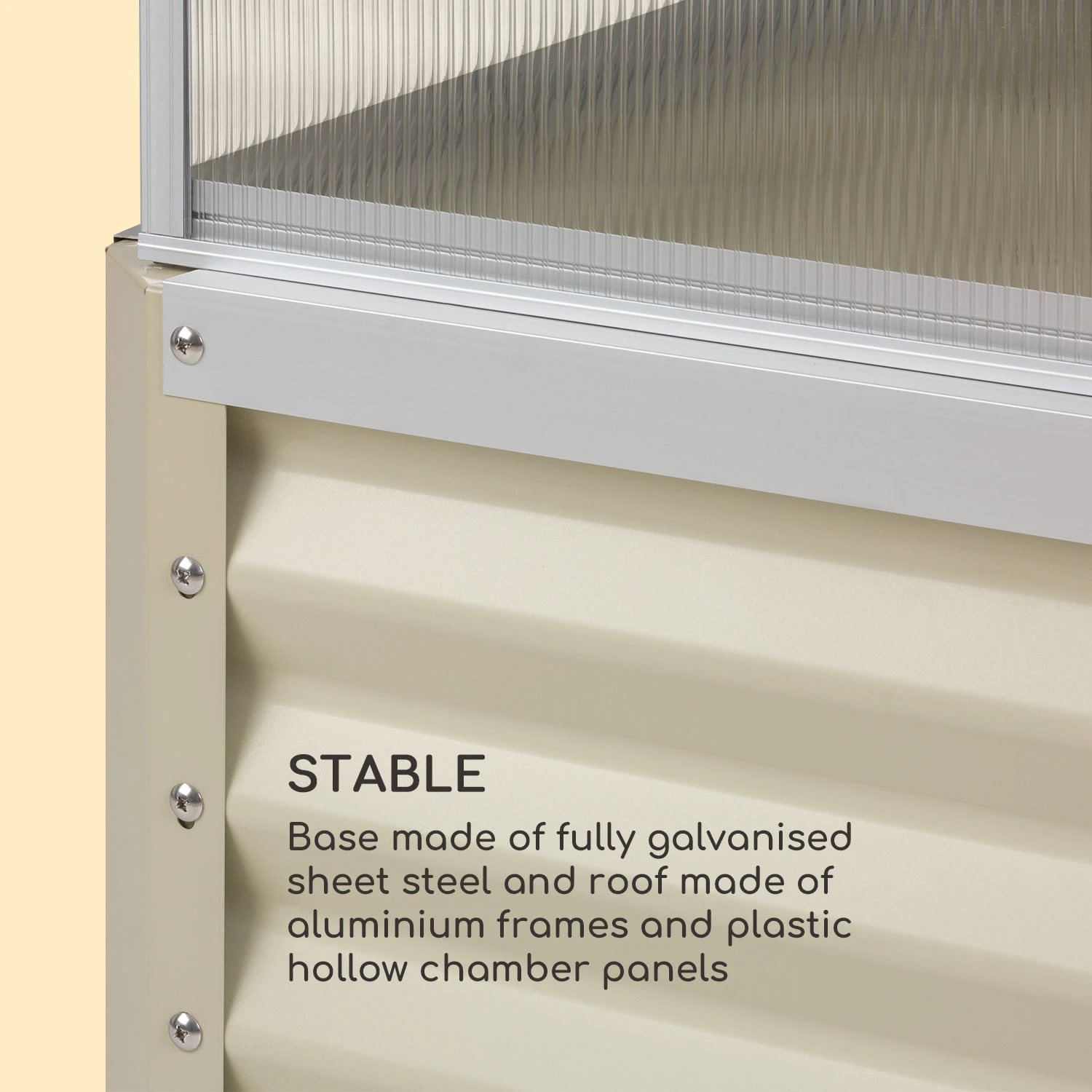 Saftige Tomaten, süße Erdbeeren, knackige Zucchini und aromatische Kräuter lassen sich dank optimaler Wachstumsbedingungen im Blumfeldt High Grow Advanced Mini-Gewächshaus spielend leicht heranziehen. Ein stabiler Überbau aus einem Aluminiumrahmen und Hohlkammerplatten macht aus dem Hochbeet ein praktisches Gewächshaus – jetzt fängt die Ernte schon an, wenn andere noch aussäen! Die stabile Basis des Gartenbeetes ist aus verzinktem Stahlblech gefertigt, was sie bestens gegen Witterungseinflüsse und Rost schützt.