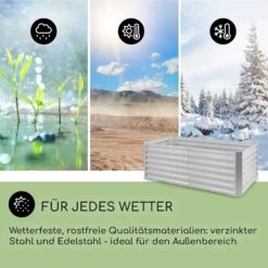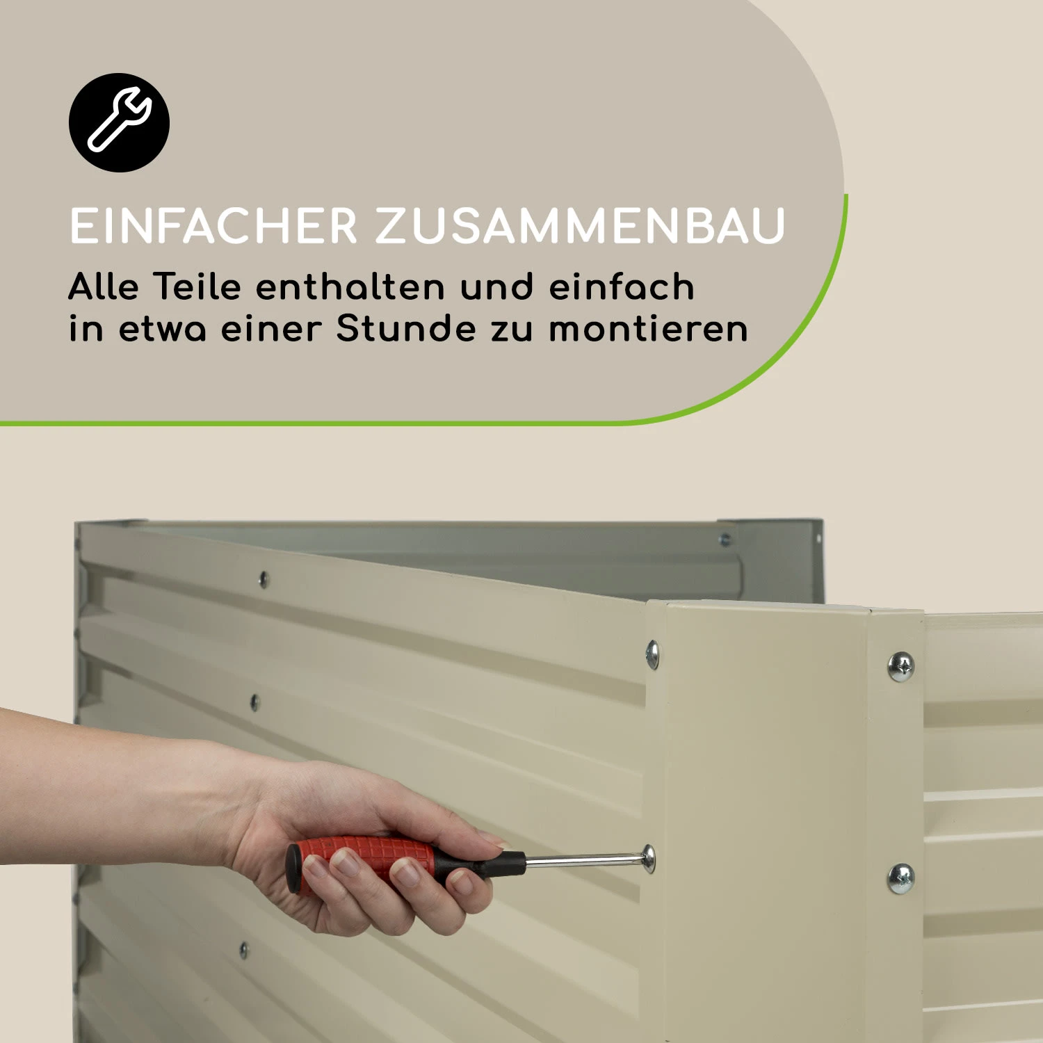 Denn saftige Tomaten, süße Erdbeeren, knackige Zucchini und aromatische Kräuter lassen sich dank optimaler Wachstumsbedingungen spielend leicht heranziehen. Einjährige Pflanzen und alljährige Gärtnerfreuden: Die stabile Rahmenkonstruktion des Gartenbeetes ist aus Stahl-Wellblech und mit einem speziellen 120 g/m² Zink-Aluminium-Weather-Shield-Coating sicher gegen Witterungseinflüsse geschützt. So trotzt das High Grow Straight ganzjährig Wind und Wetter.