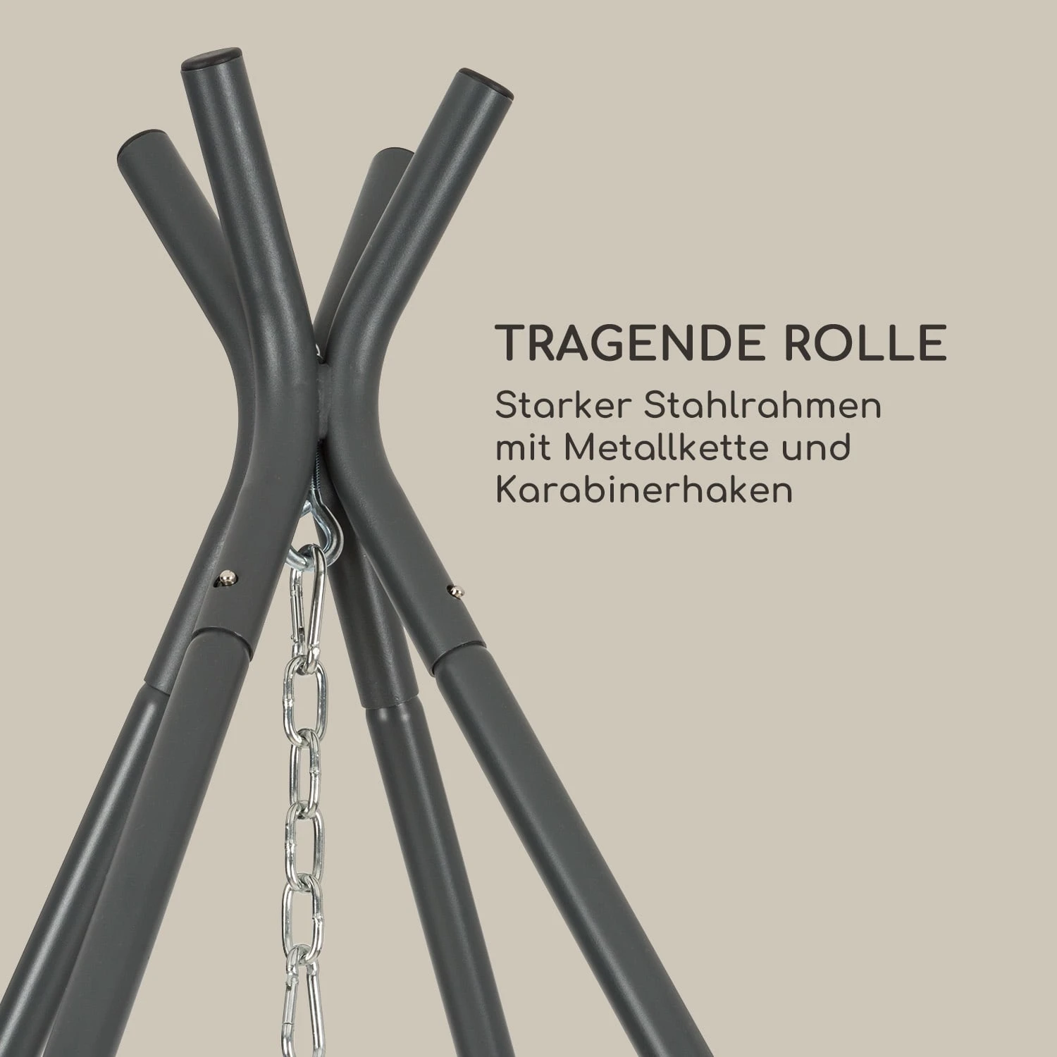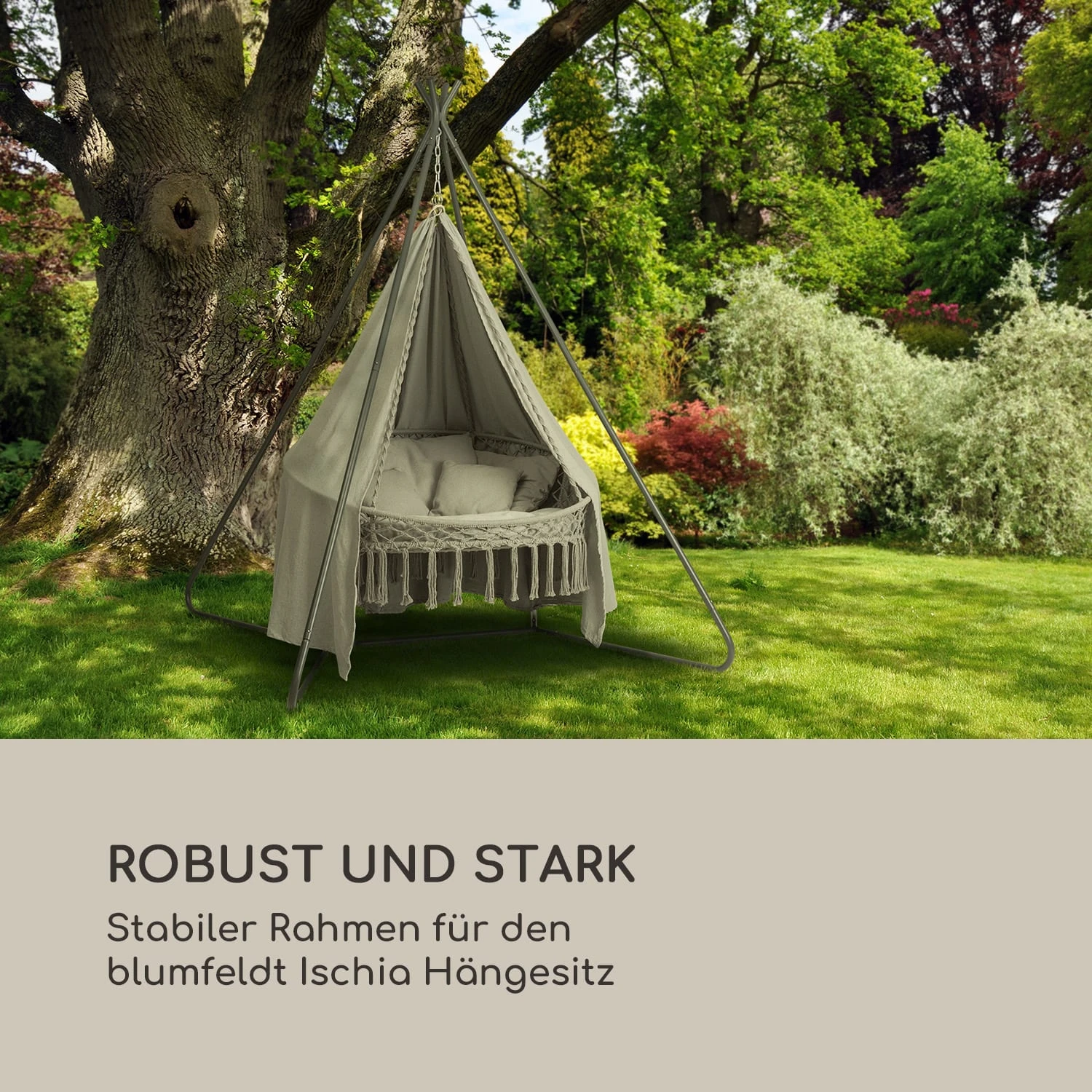 Erlebe schwerelose Entspannung für drinnen und draußen mit dem blumfeldt Ischia Hängesitz-Rahmen.