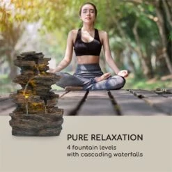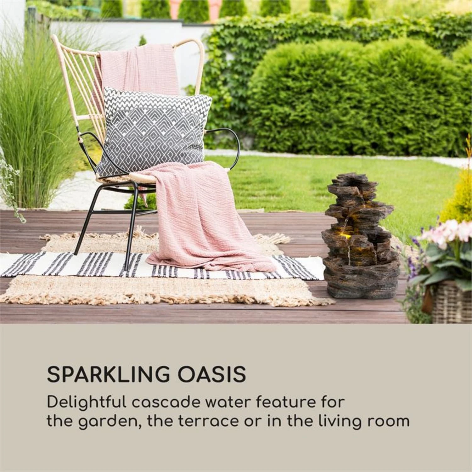 Wild romantisch wie die Küste Siziliens: Der Blumfeldt Messina Solar-Kaskadenbrunnen lässt mit der Kraft der Sonne das Wasser zwischen seinen vier Stufen fließen und hilft die Welt mit seinem funkelnden Wasserspiel zu entschleunigen. Der täuschend echt aussehende Brunnen ist dabei äußerst dekorativ und eine Zierde für jeden Garten, Balkon oder das Wohnzimmer.