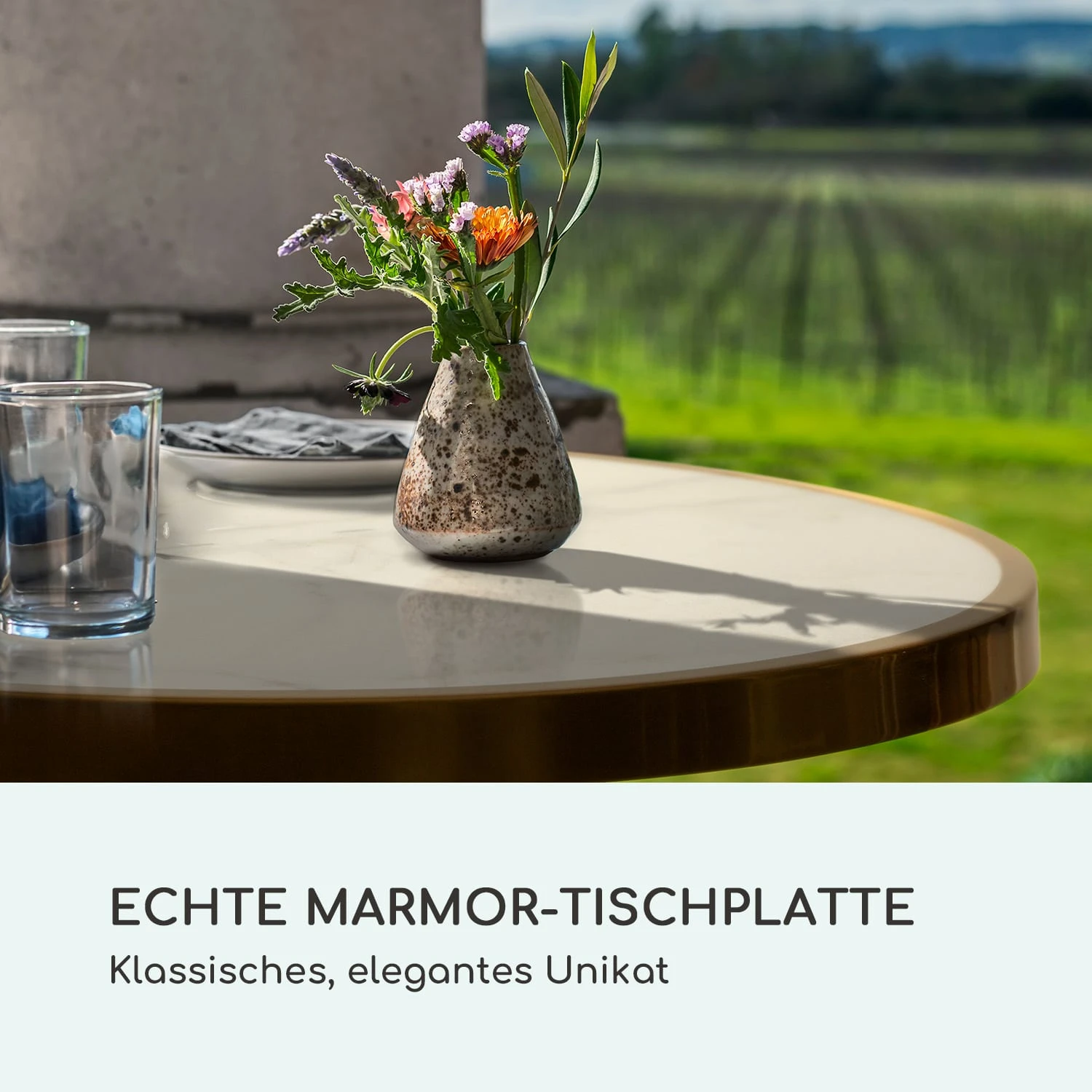 - Material Tischplatte: echter Marmor