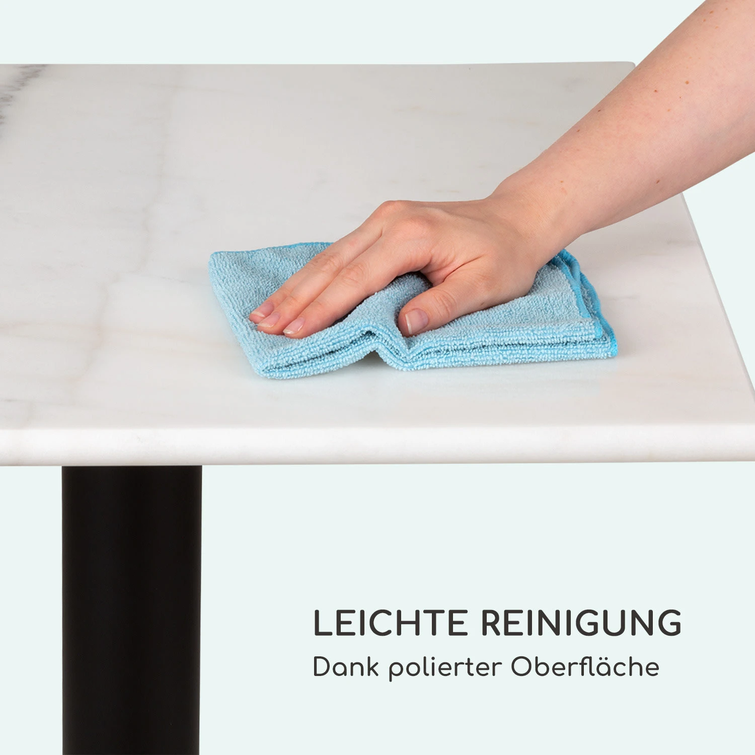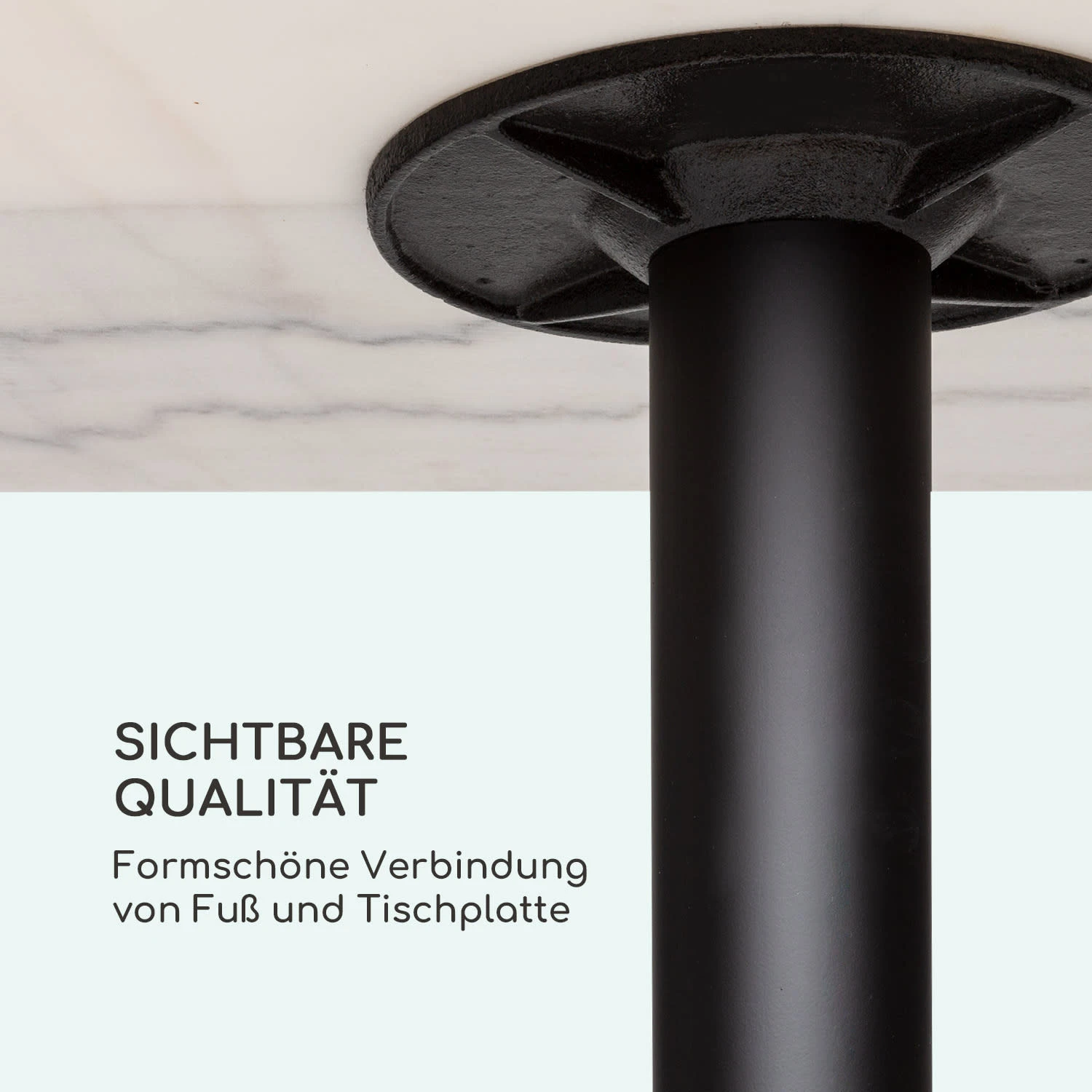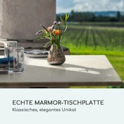 Luxuriöser Genuss mit Jugendstil-Atmosphäre – das verspricht dir der blumfeldt Patras Onyx Gartentisch und zieht dabei alle Register: Die quadratische Tischplatte ist aus sauber poliertem, echtem Marmor. So ist dieser Tisch ein Unikat – denn Maserung und Färbung des Gesteins bringen immer wieder einen ganz eigenen Charakter hervor und verleihen jedem Umfeld neuen Glanz. Diese prachtvolle Erscheinung wird durch den stabilen gusseisernen Standfuß mit Verzierungen zusätzlich verstärkt. Egal ob für das Frühstück auf dem Balkon, zum geselligen Kaffee auf der Terrasse oder das romantische Candle Light Dinner unterm Sternenhimmel: Der blumfeldt Patras Onyx Marmortisch sorgt für ein außergewöhnliches Ambiente.