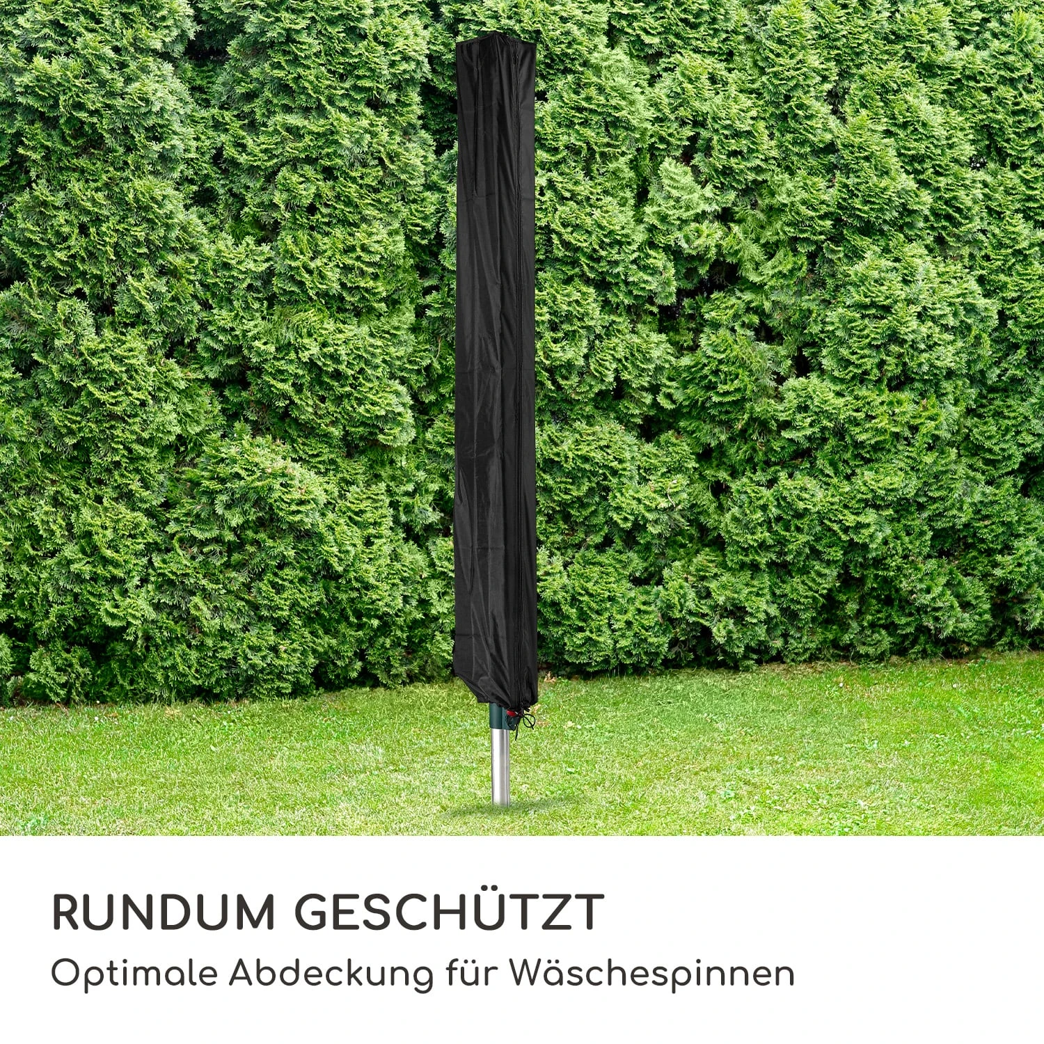 Die hochwertige Husse eignet sich für gängige Wäschespinnen aller Hersteller und lässt sich mit wenig Mühe über deine eingeklappte Wäschespinne stülpen. Mit dem seitlichen Reißverschluss und der Kordel am Saum kannst du die Hülle sicher verschließen und schon ist deine Wäschespinne schützend umhüllt.
