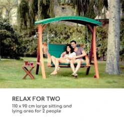 Die Blumfeldt TahitiHollywoodschaukel macht es ganz leicht, den Alltag zu vergessen. Auf ihrer 110 cm breiten, sanft geschwungenen SitzflĂ€che mit 4 cm dicker Polsterung schaukelt es sich allein oder zu zweit komfortabel wie in einem Liegestuhl. Das fest installierte Sonnendach bringt zusĂ€tzliche Geborgenheit und spendet wohltuenden Schatten – egal wo die Schaukel ihren Platz findet. Auch in puncto Standsicherheit bleiben keine WĂŒnsche offen. Massive Holzbalken, vollverzinkte Stahlketten und Schrauben sorgen fĂŒr eine hochstabile Konstruktion die mit bis zu 250 kg belastbar ist. Das grĂŒne Sonnendach und das witterungsfest lasierte LĂ€rchenholz zaubern Sommerstimmung in jede Sitzecke.