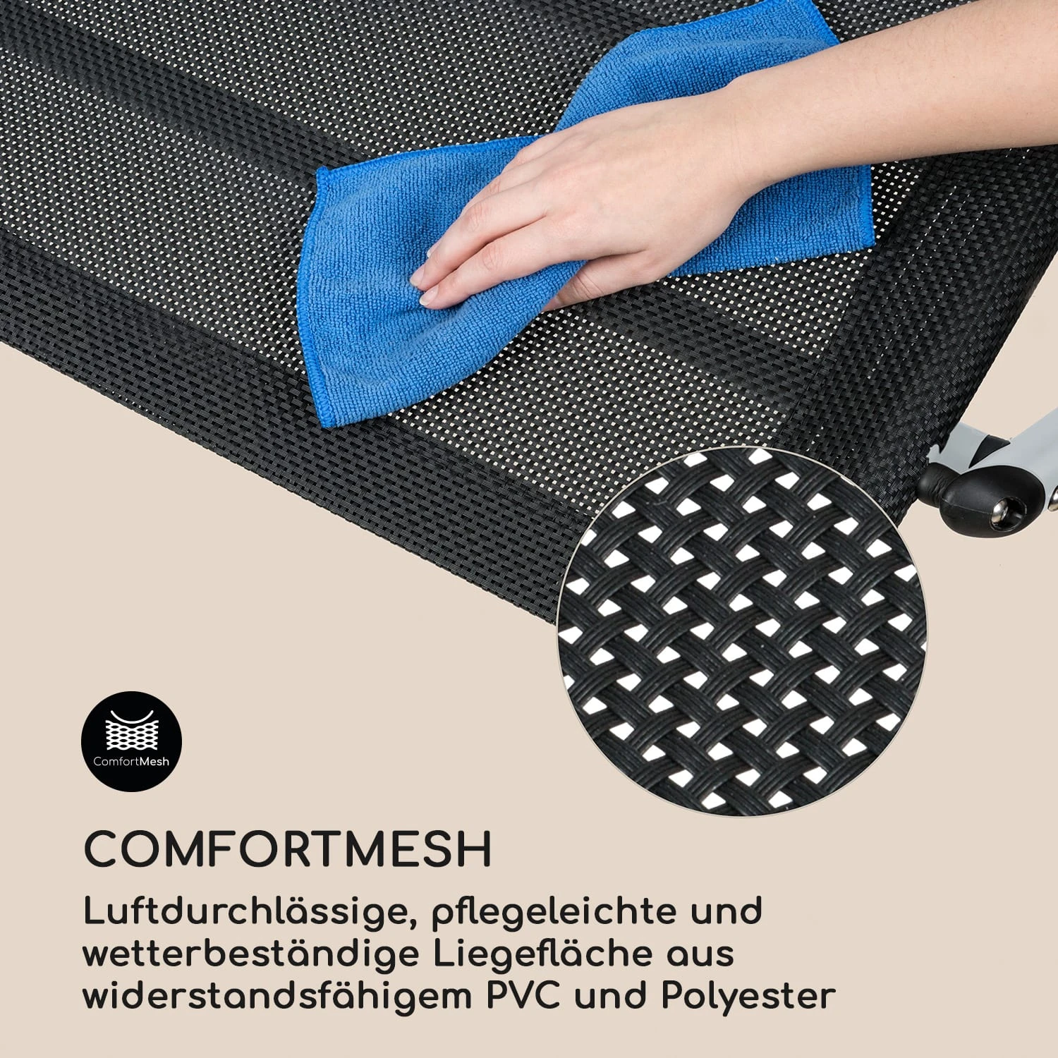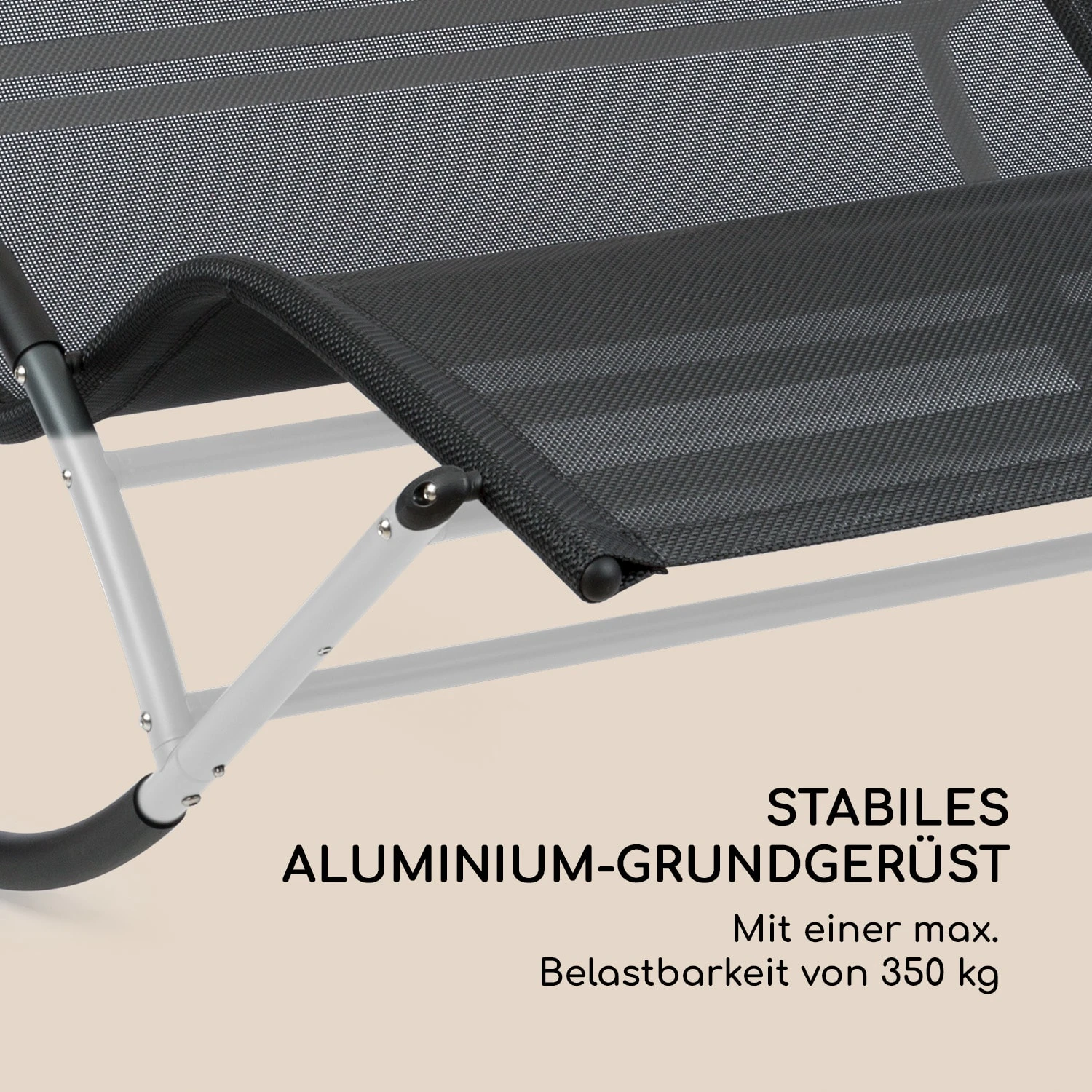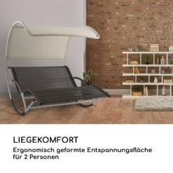 Erholung pur! Verwandeln Sie Ihr Zuhause mit der Blumfeldt The Big Easy Schwingliege in eine Insel der Entspannung. Die Wohlfühloase verfügt über einen stabilen Stahl-Rahmen, der durch seine Pulverbeschichtung vor äußeren Einflüssen geschützt wird. Das Grundgerüst ist mit einem wasserdichten Dach sowie einer Liegefläche (LxB: 200 cm x 130 cm) für 2 Personen bespannt und ermöglicht ein Tragegewicht von bis zu 350 kg. Die schaukelnde Ruhestätte fügt sich durch ihr wellenförmiges Design perfekt in jedes Gartenambiente ein und bietet an heißen Sommertagen verlässlichen UV- und Sonnenschutz über ein gewölbtes Schattendach, das bei Bedarf abgenommen werden kann. Die schaumgeschützte Standvorrichtung eignet sich zudem für sämtliche Bodenbeläge und macht dadurch sowohl eine In- als auch Outdoor-Nutzung möglich. Darüber hinaus unterstützt der ergonomisch geformte Liegebereich die natürliche Form der Wirbelsäule und bietet 2 Personen eine Entspannungsfläche aus bequemem ComfortMesh, das durch seine pflegeleichte Textilstruktur besonders einfach zu reinigen ist.